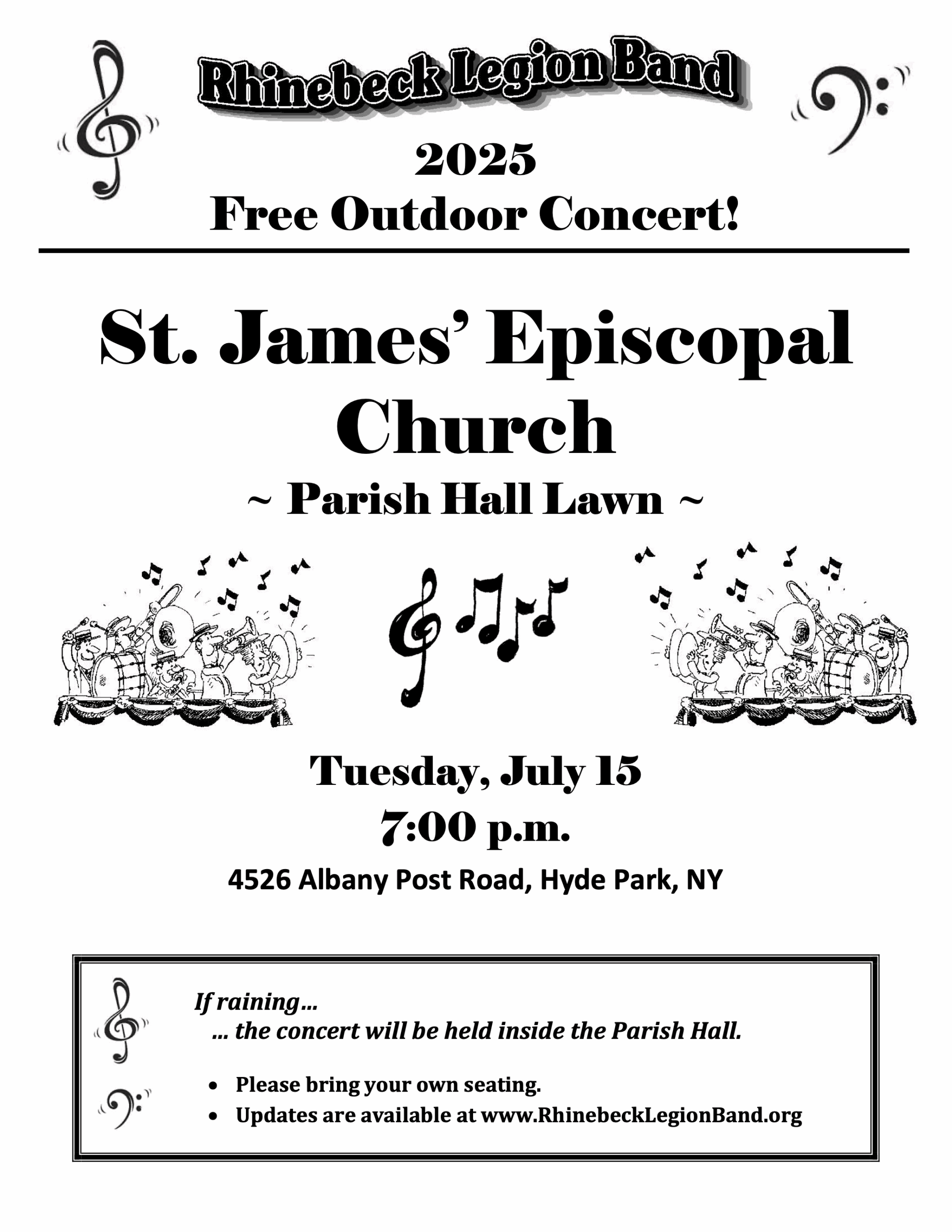 Rhinebeck Legion Band Concert Tuesday, July 15, 7 pm on the Parish Hall South Lawn Enjoy a fun evening on the Parish Hall lawn with this fantastic 45-piece community band! Please bring your own seating. Rain location: Parish Hall. |